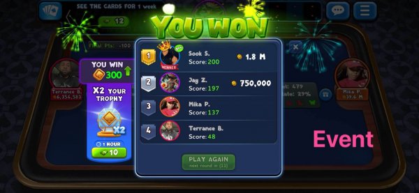 Event games do not count towards monthly incentives or belts.