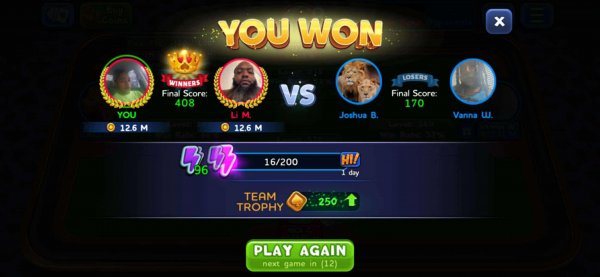 1st | Tapriece P. | 378 |