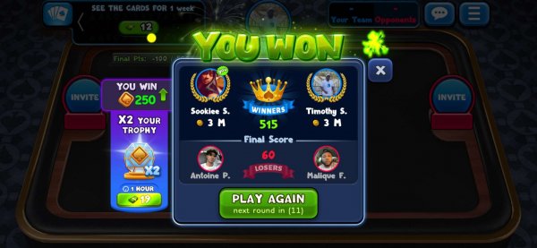 1st | Tapriece P. | 498 |