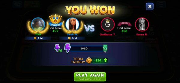 1st | Tapriece P. | 313 |