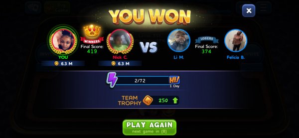 1st | Tapriece P. | 307 |