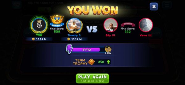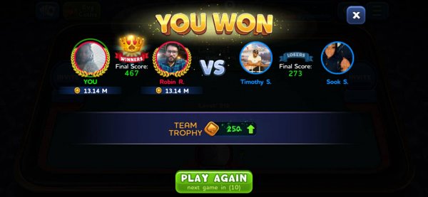 1st | Tapriece P. | 287 |