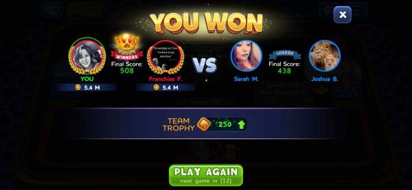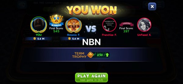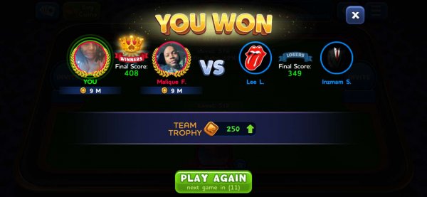 1st | Tapriece P. | 412 |