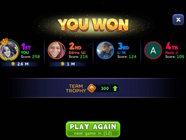 1st | Vanna W. | 476 |