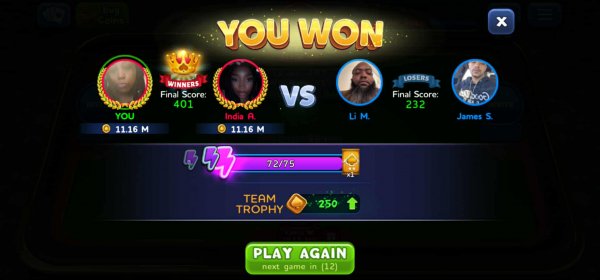 1st | Tapriece P. | 378 |