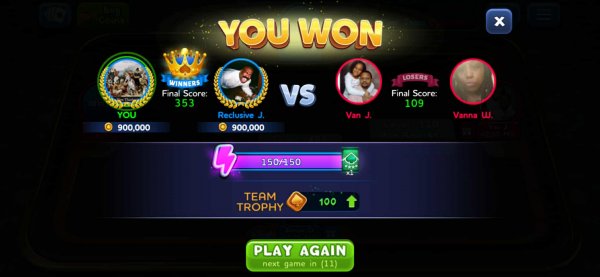 | 7 | Vanna White | 2 | 2 | 4 | (50%) | View Games |
