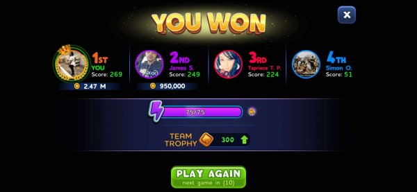 1st | Tapriece P. | 509 |