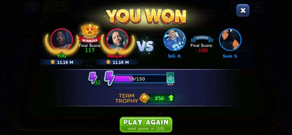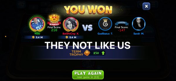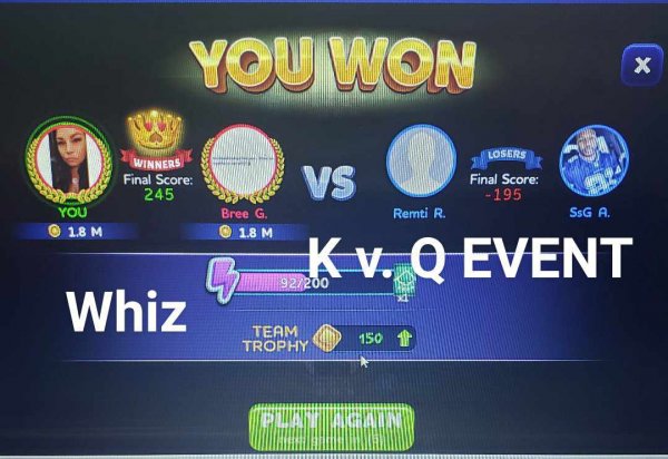 96 | Queen Tasha | 2 | 1 | 3 | (67%) | View Games |