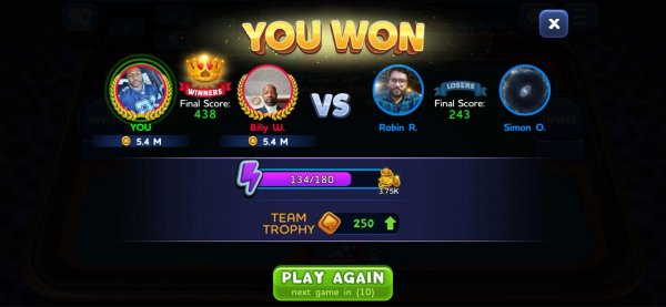 1st | Billy W. | 357 |