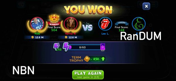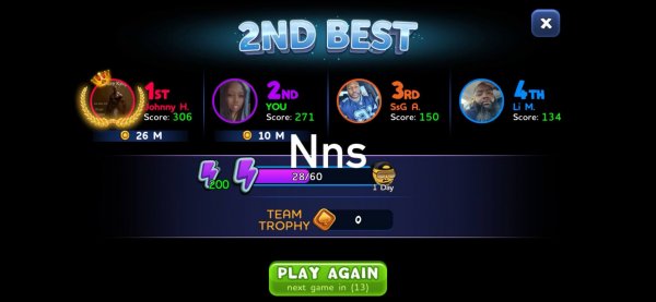 97 | Reeni Bee | 1 | 2 | 3 | (33%) | View Games |