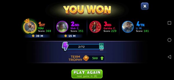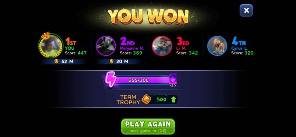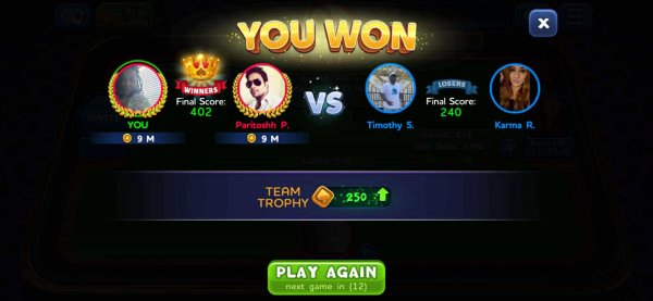 1st | Tapriece P. | 407 |