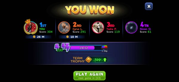 1st | Tapriece P. | 304 |
